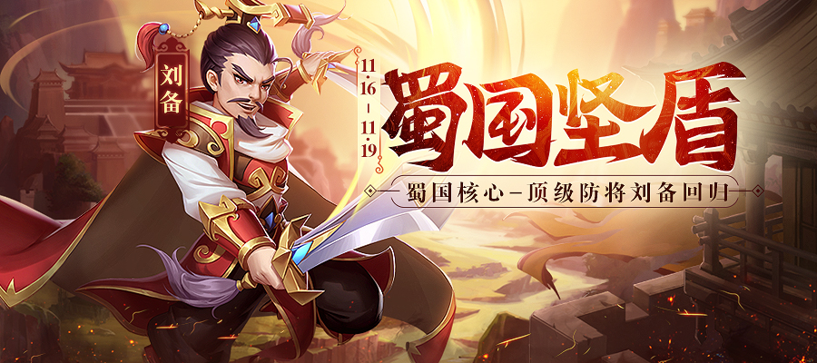 活动时间:11月16日-11月19日使用武将“关羽”获得2局排位赛胜利,即可获得刘备礼包*2
