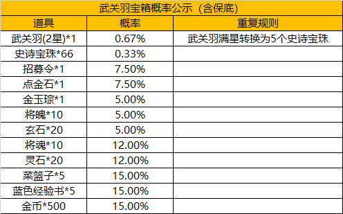 适度娱乐,理性消费,以下为武关羽宝箱概率图: