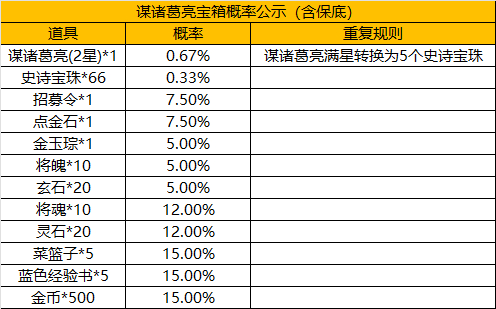 适度娱乐,理性消费,以下为谋诸葛亮宝箱概率图: